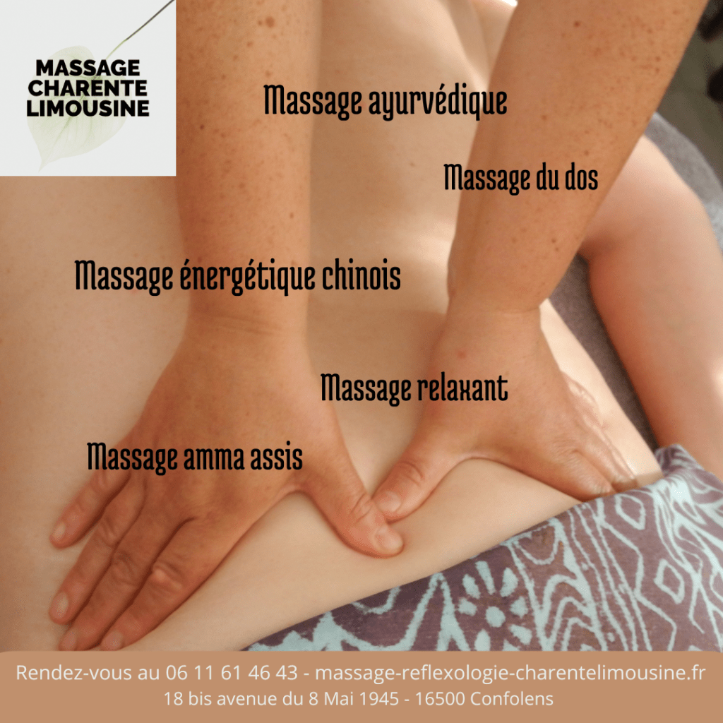 – le massage de dos : très demandé pour éliminer les tensions de la nuque, du bas du dos, des épaules, alléger la colonne vertébrale…