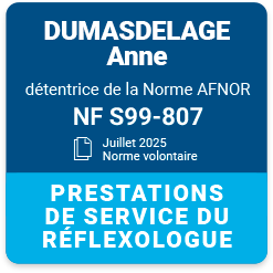 Anne Dumasdelage s’est formée depuis 2018 en massage à l’Institut Cassiopée (78) et à l’école Amma Shin Dô (33), ainsi qu’à l’Académie francilienne de réflexologie (77). Elle est affiliée, à ce dernier titre, à la Fédération française des réflexologues.